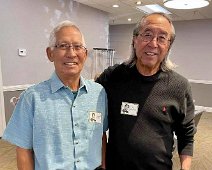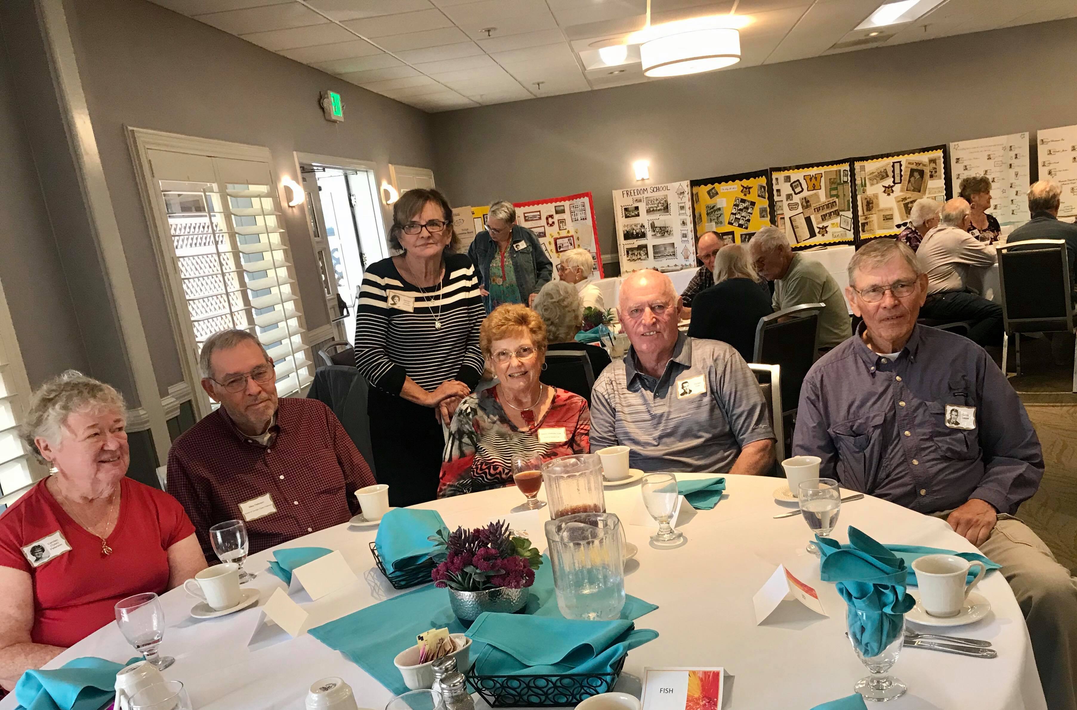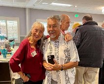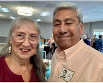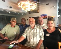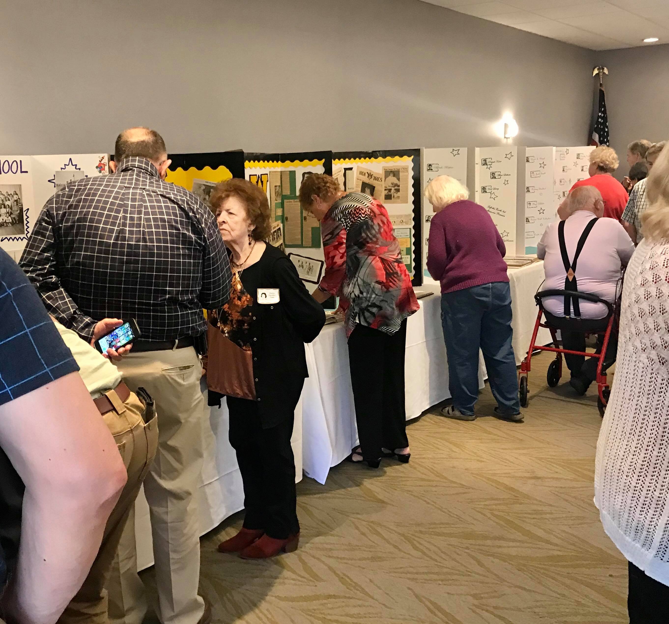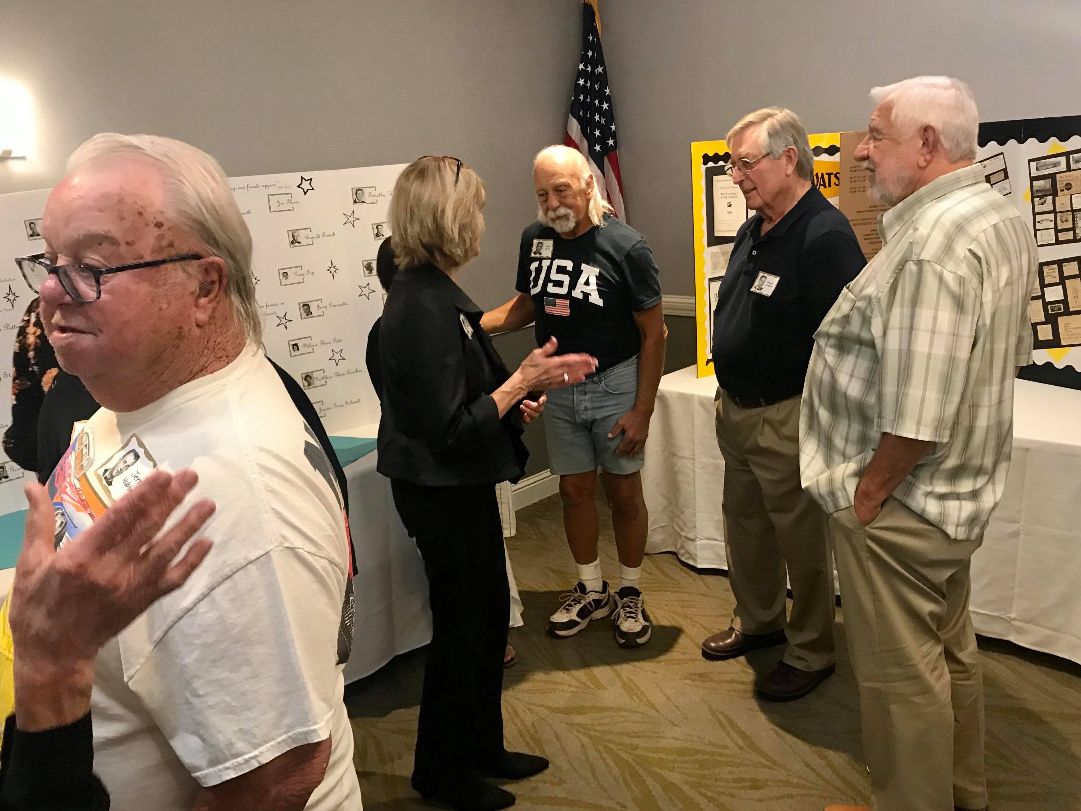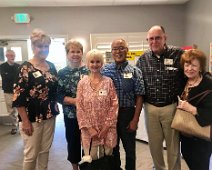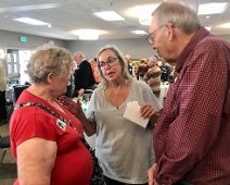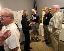 Jerry Hubbell and daughter Cynthia Ballesteros talking to Dan Pini. In the background: Susun Pitts Dodge, George Langford, Amanda (granddaughter of Sharon…