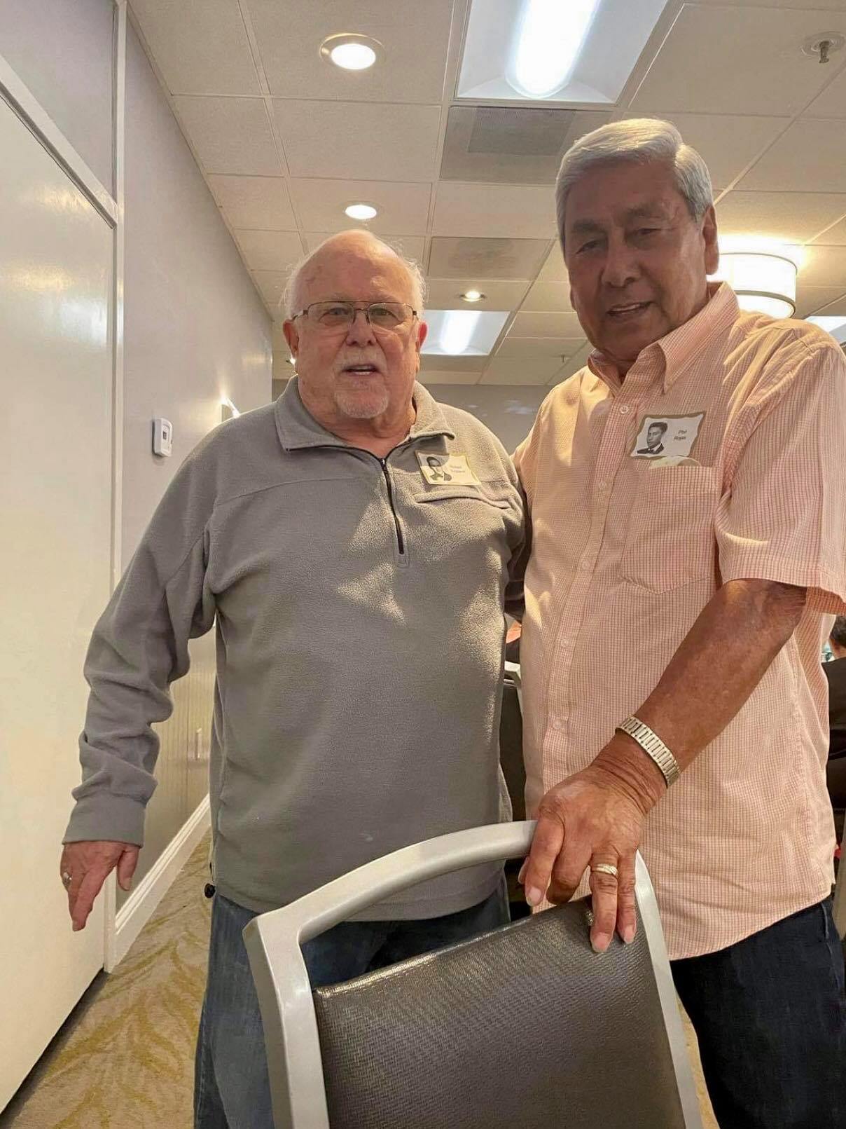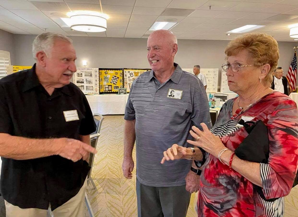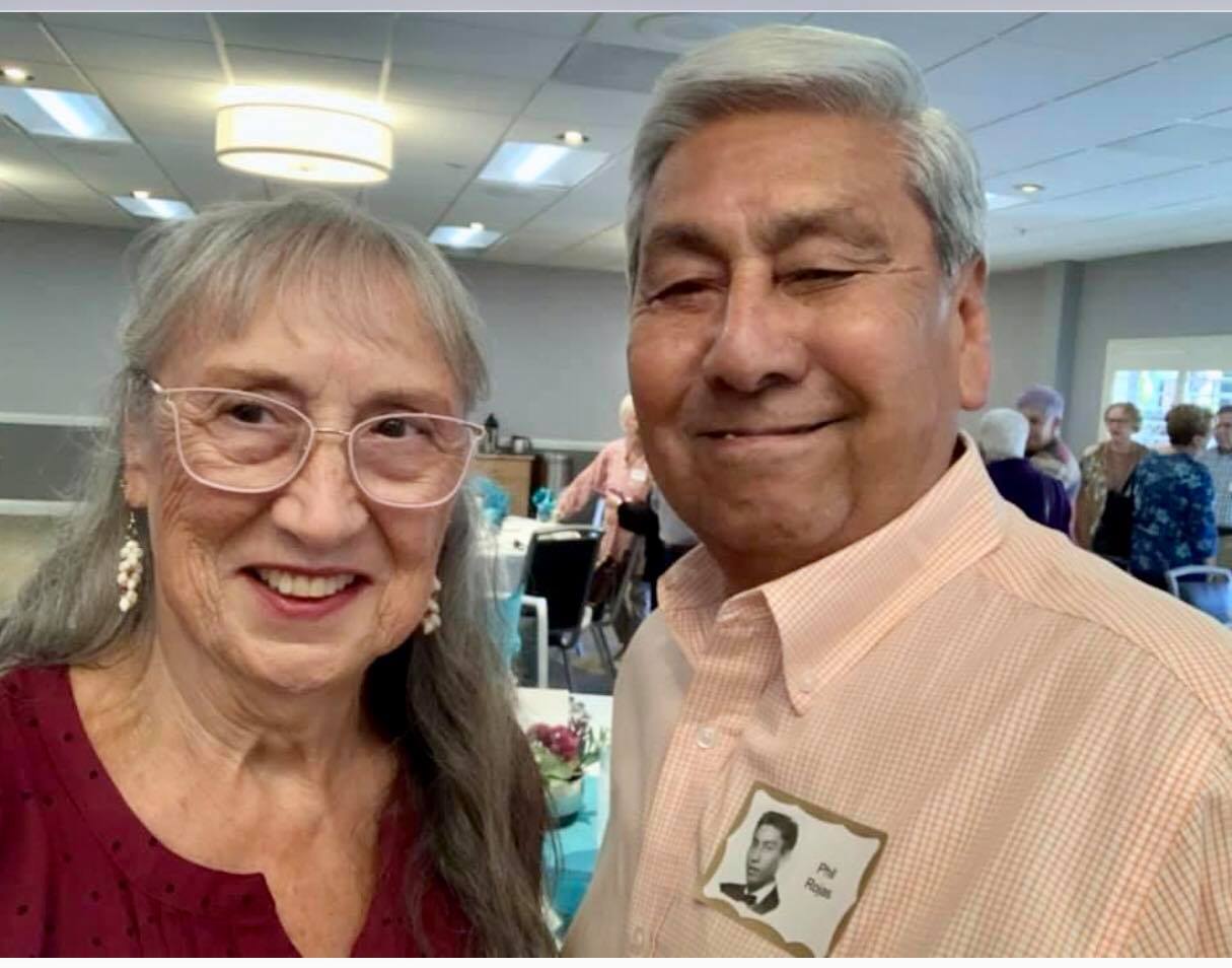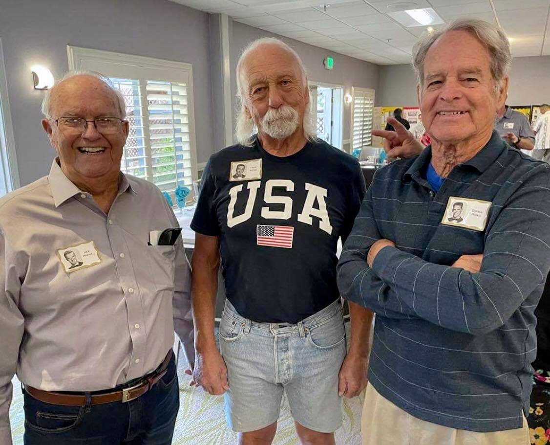 Jerry Hubbell and daughter Cynthia Ballesteros talking to Dan Pini. In the background: Susun Pitts Dodge, George Langford, Amanda (granddaughter of Sharon…